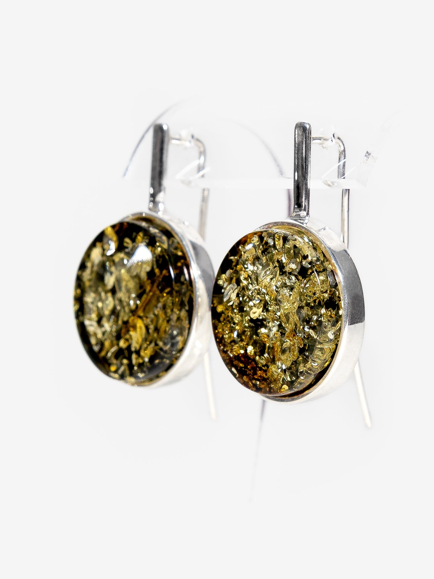 Серебряные серьги с цельным зеленым янтарем (19 мм), серебро 925 пробы – купить за 28 250 ₽ | Балтийский ювелир