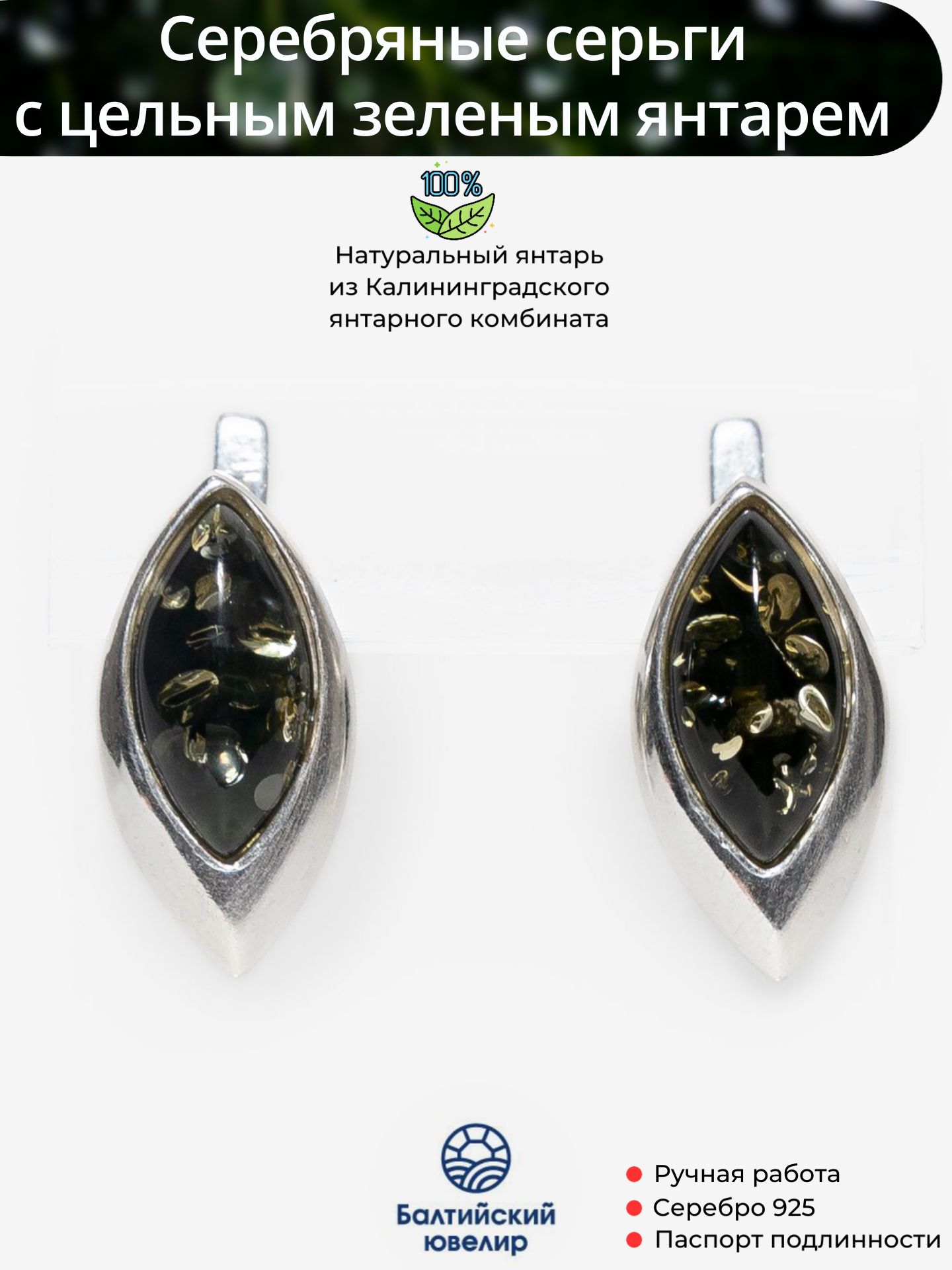 Позвольте представить вашему вниманию изысканные серебряные серьги с натуральным зеленым янтарем. Эти великолепные украшения изготовлены из серебра 925 пробы с безупречным качеством и вниманием к деталям, что делает их идеальным выбором для любой женщины, стремящейся подчеркнуть свою индивидуальность и стиль.