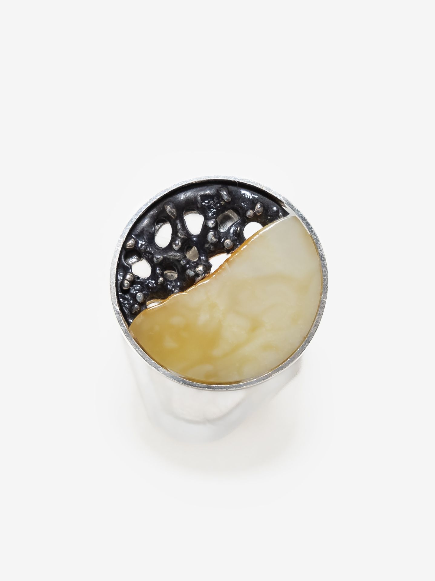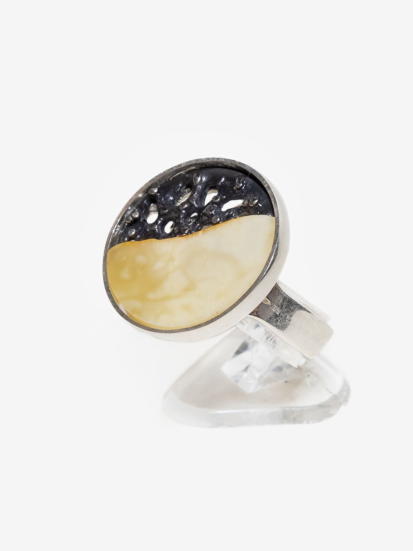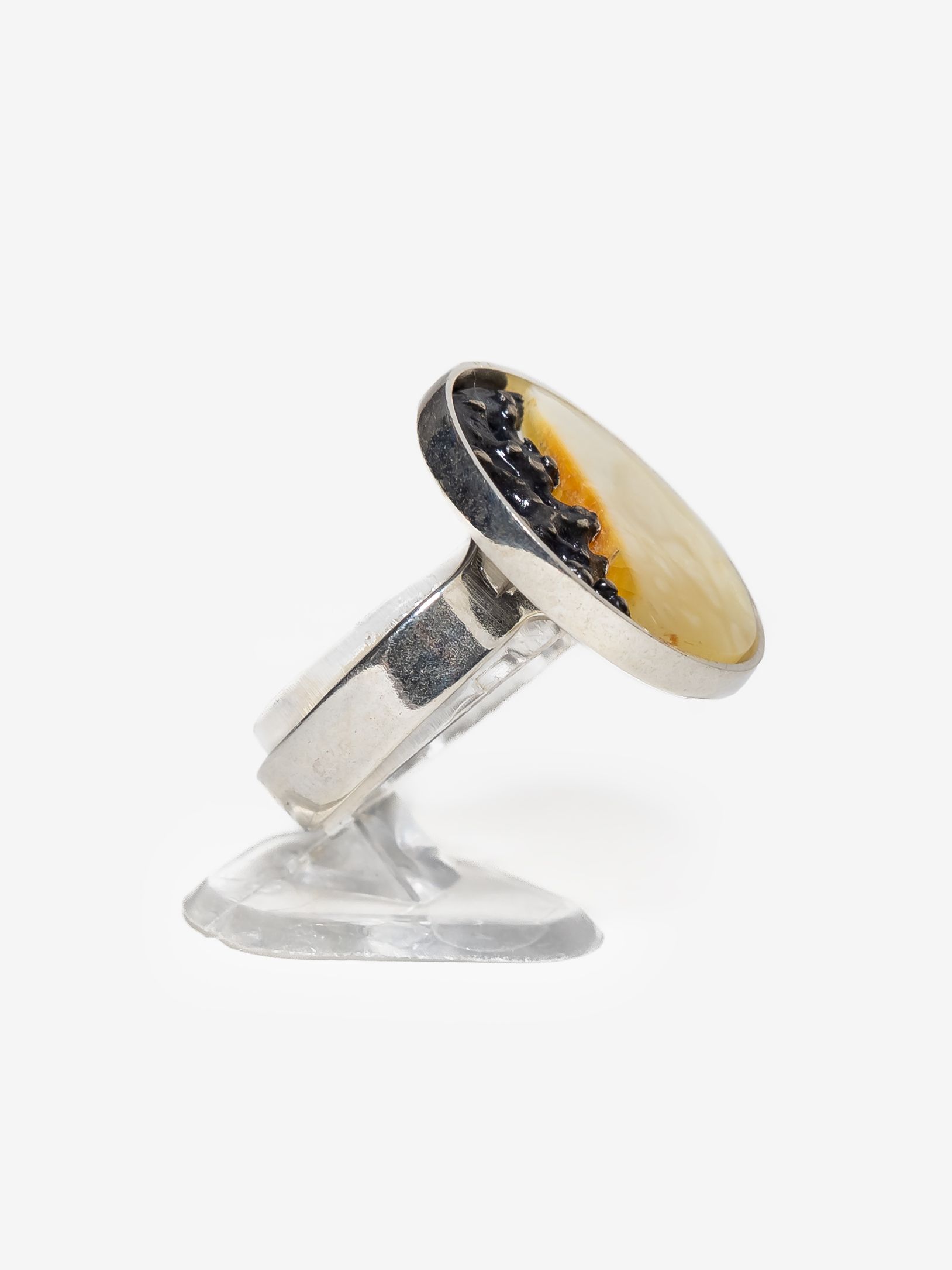 Кольцо безразмерное круглой формы созданы вручную и украшены цельными кусочками янтаря с уникальной природной текстурой.