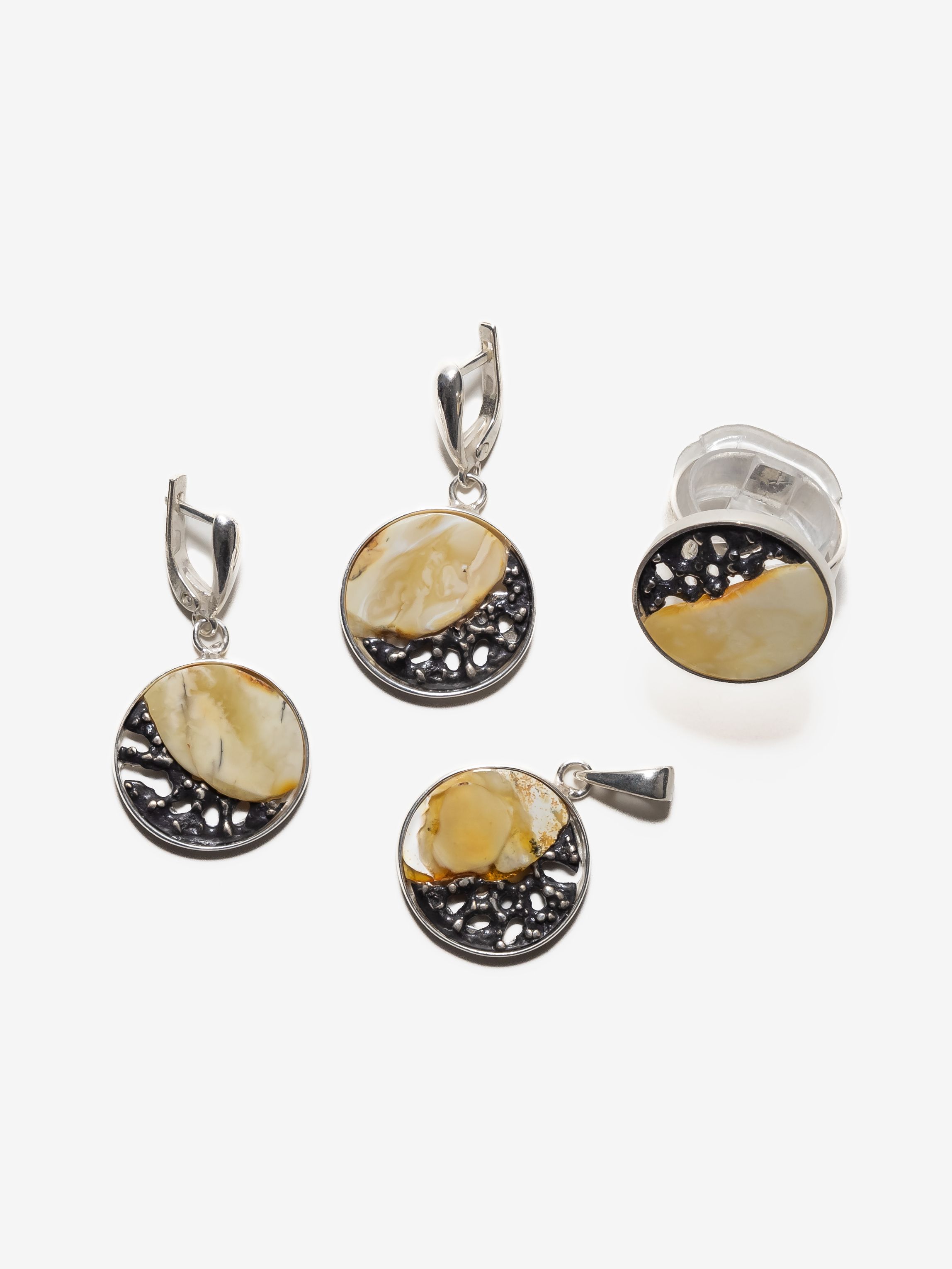 Представляем вам великолепную коллекцию уникальных украшений из натурального балтийского янтаря в серебре «Модерн». В дизайне изделий из этой коллекции воплотились идеи об истории Земли и о растительном происхождении янтаря – вставки из текстурированного натурального янтаря заключены в объятия веток из чернёного серебра. Неповторимость каждого изделия делает украшения из этой коллекции особенными и желанными.